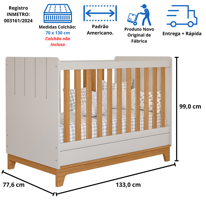 O Berço Retrô é um produto versátil, 2 em 1, que vira Mini Cama acompanhando o crescimento do seu Bebê.